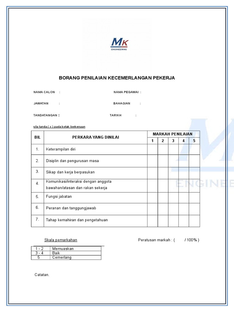 Contoh Borang Penilaian Prestasi Pekerja Otosection
